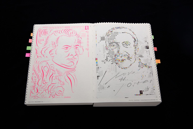 The book „daydream jumping he“ was published together with the opening. On 678 pages, Jumping He is revewing his graphic design achivements of the past 25 years. Designed and published by hesign Berlin, with 35 articles written only for this book by famous graphic designers.